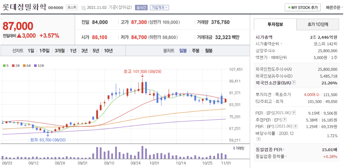 요소수가 국가적 이슈라서 주식 시장에서 관심 받을만 하긴 하나, 품귀 현상이 어찌됐든 일시적이라 두달 뒤면 어느 정도 정상화 될 소지가 보이는데다가 이슈의 원인이 원료 자체가 수급되지 않은 상황에서의 재고량에 대한 시장가격의 급등의 차익으로 수익을 볼 수 있는 구조기 때문에 실질적인 실적에 영향을 줄만해 보이진 않습니다. 저라면 매수는 고민이 많이 될 듯 하네요.